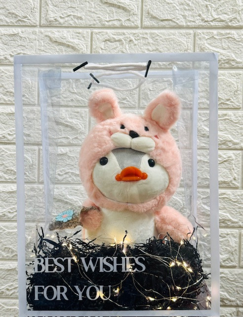 یه بگ کیوت که پرشده با عروسک و پوشال و ریسه