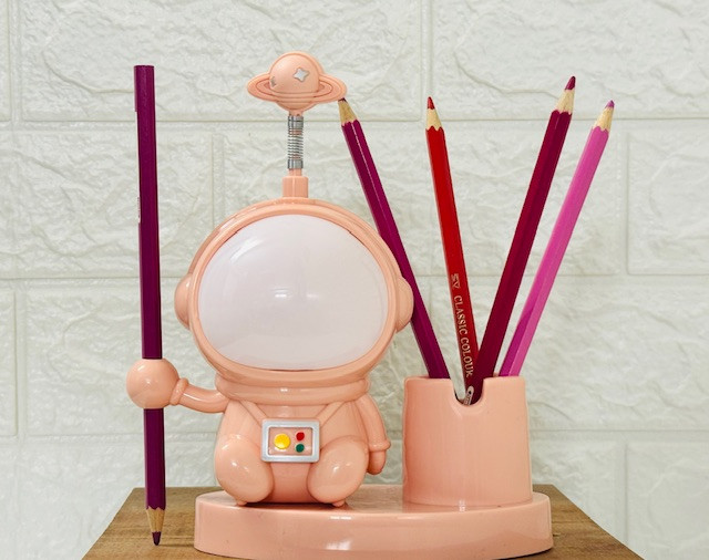 چراغ مطالعه جاقلمی دارطرح فضانوردنشسته-صورتی